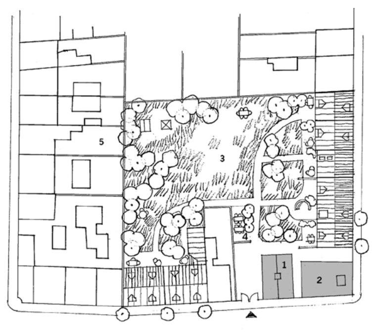 basen i las w obrębie działki. Za to nie ma potrzeby sytuowania parkingu na terenie działki i też nie każde wyjście do miasta musi się łączyć z korzystaniem z samochodu. Pomimo tego , że od strony ulicy zabudowa wygląda identycznie jak wielu kwartałów obok, to „wejście dzisiaj do Jerngarden jest jak wejście do raju pośrodku miasta. Urzekające domy, współdzielące wewnętrzny dziedziniec w formie parku.”